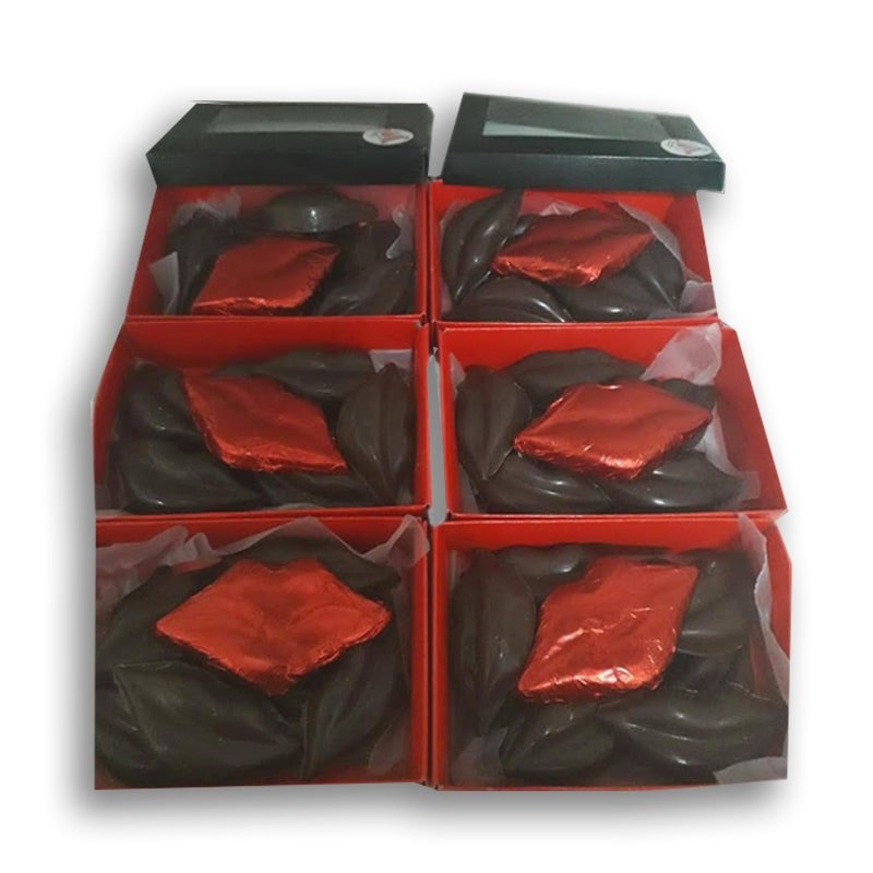 Románticos besos de chocolate presentados en caja. Ideales para regalar en ocasiones como la semana de la dulzura, por un cumple mes o para sorprender cualquier día.