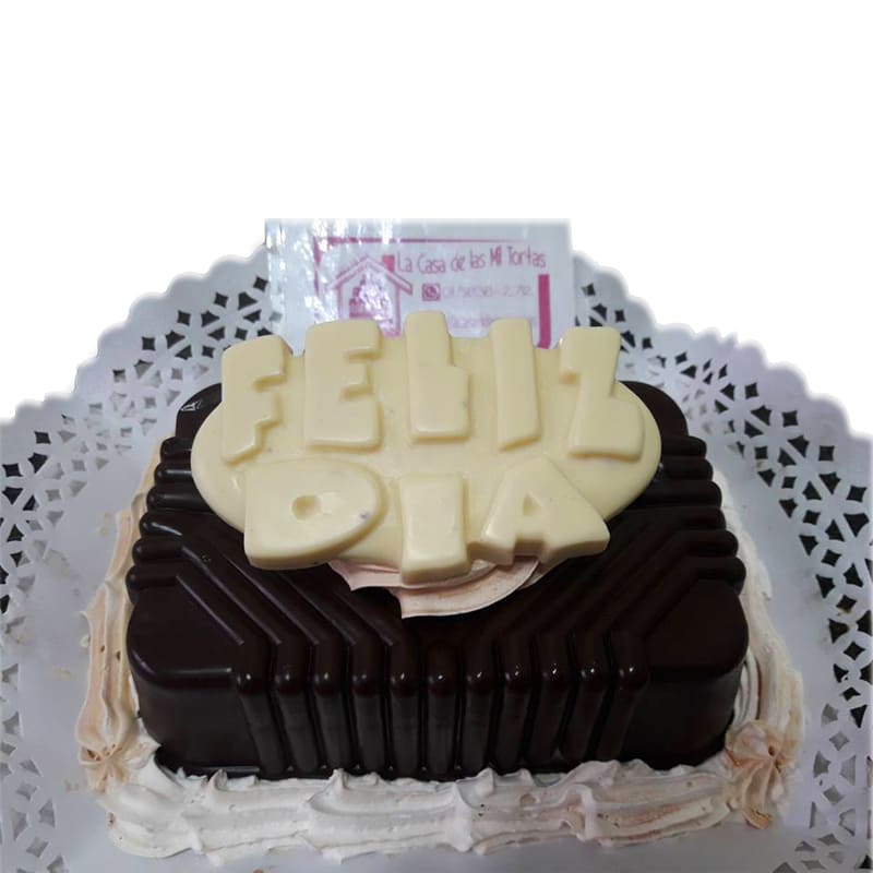 Chocotorta bombón con cartel conmemorativo feliz día, ideal para regalar en cualquier ocasión.
