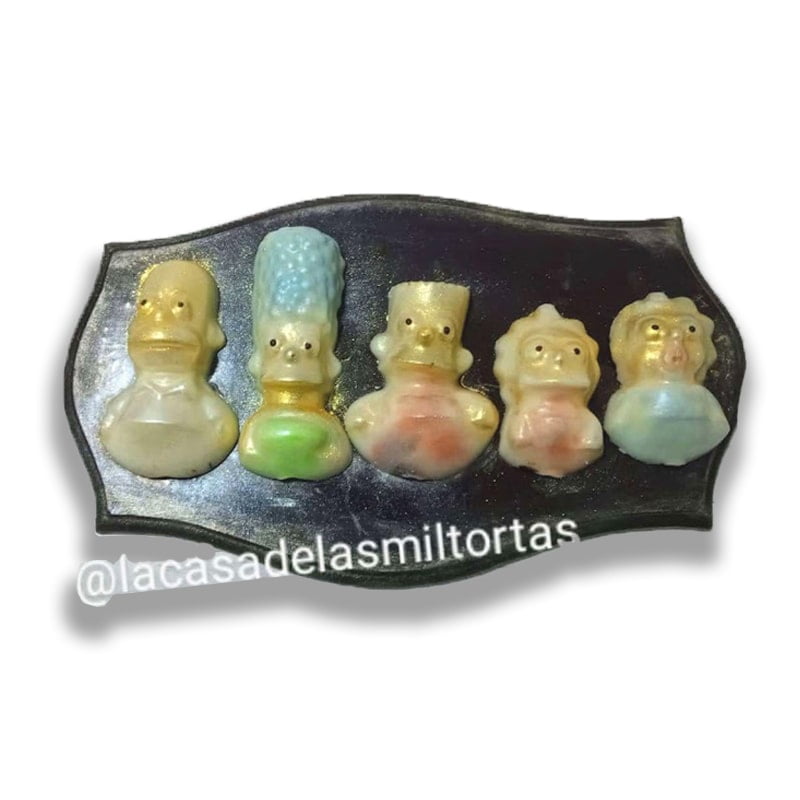 Cuadro con la figura de los integrantes de la familia de Los Simpsons elaborado en chocolate y pintado a mano.