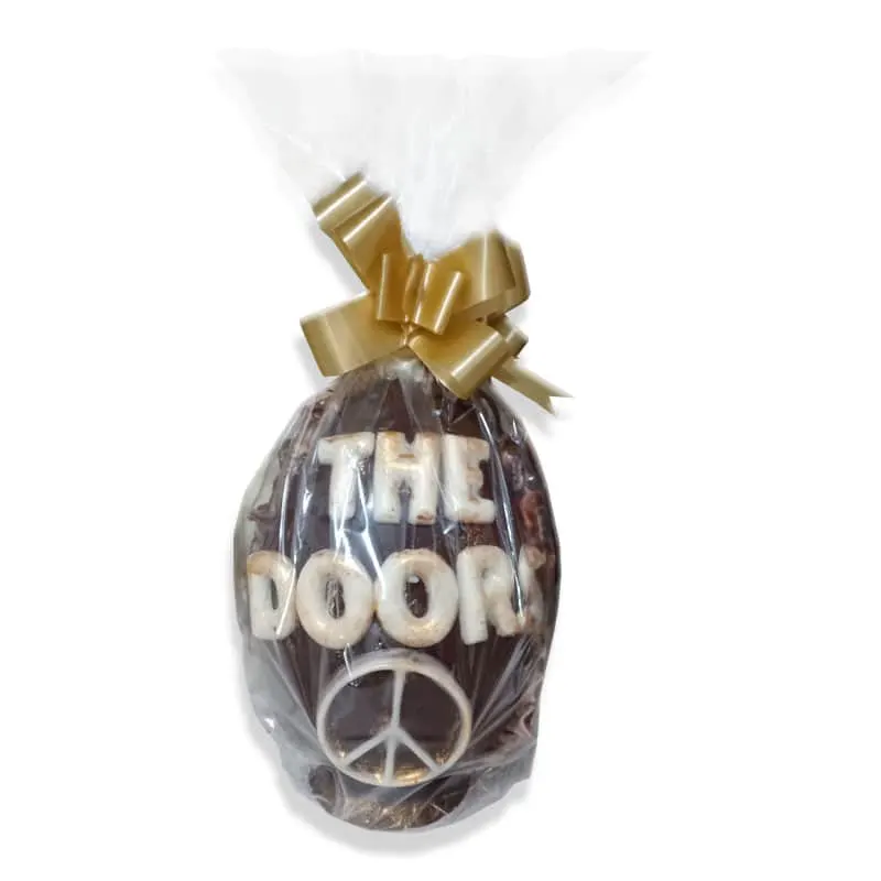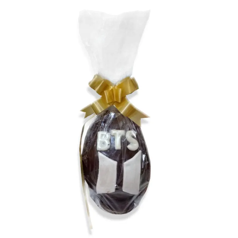 El nombre de tu cantante o el logo de tu banda musical favorita en tu huevo de Pascua. Elaborados de chocolate blanco, con leche o semi-amargo.