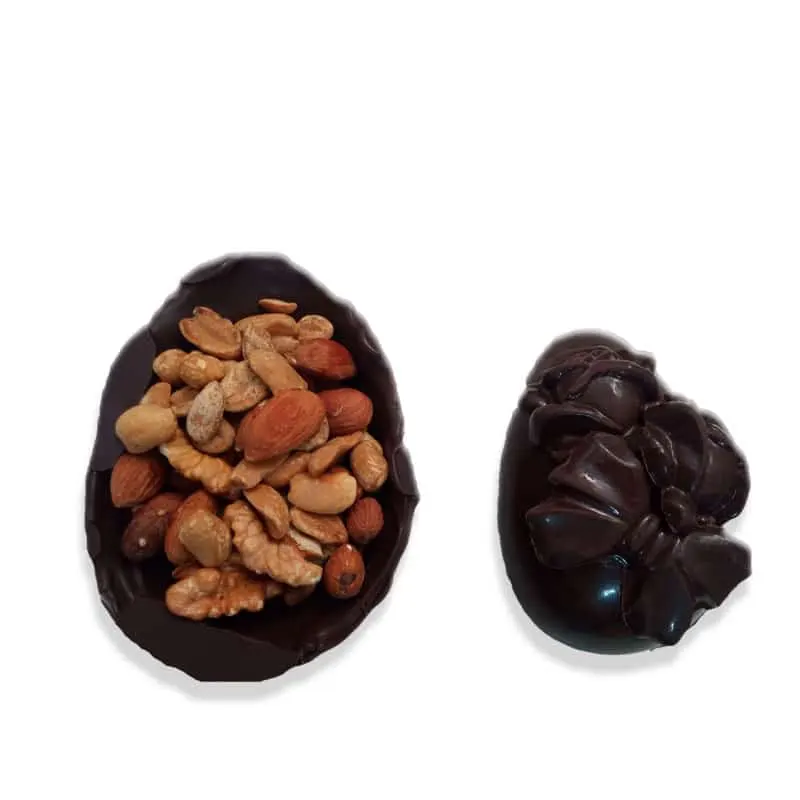 Exquisito y delicado huevo de Pascua con relleno sorpresa de frutas secas.