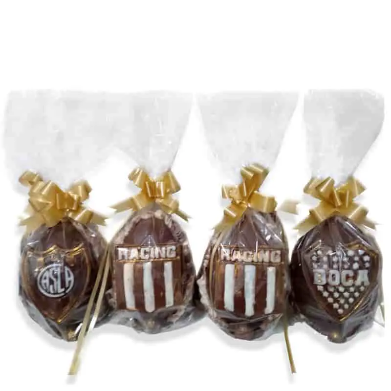 Huevos de Pascua elaborados de chocolate con leche y decorados de forma artesanal.