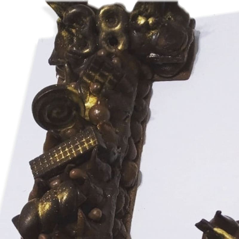 Cubierta de copitos de dulce de leche bañados con chocolate decorada con chocolate extra.