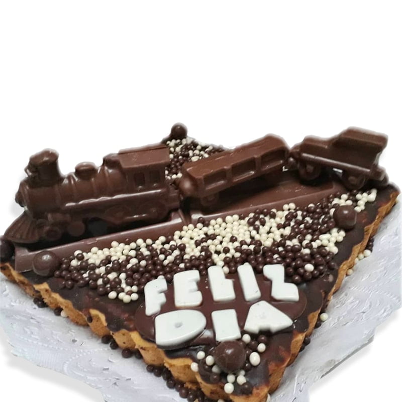 Tarta decorada con figuras del más rico chocolate para compartir en el día de las infancias.