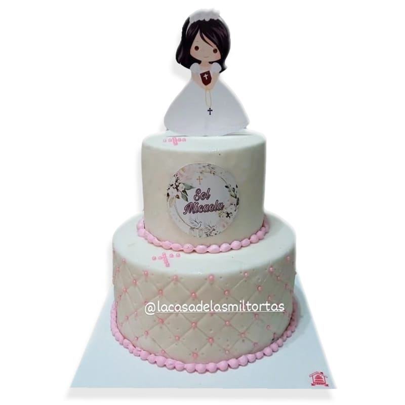 Torta temática dos pisos, primer bizcochuelo de vainilla rellenos dulce de leche y crema chocotorta y segundo bizcochuelo de vainilla crema oreo y crema de bananita dolca, cubierta de fondant casero y toppers fotograficos.