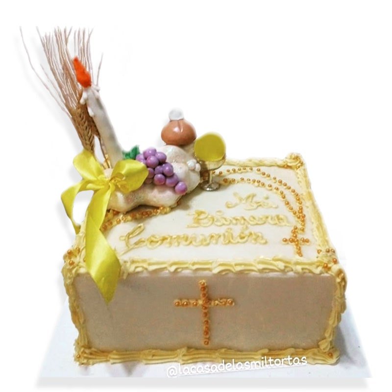 Torta clásica de Comunión 20 porciones. Elaborada con bizcochuelo mixto, rellenos dulce de leche y crema de chocolate.