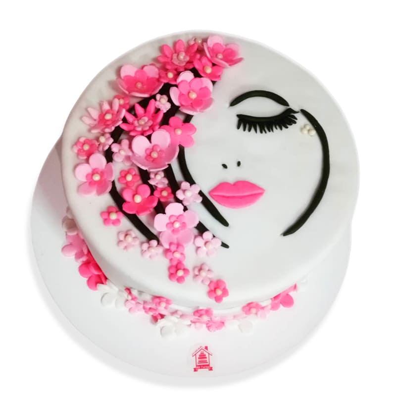 Bizcochuelo de vainilla, rellenos: crema tiramisú y crema havanna. Decoración de fondant y flores de azúcar.