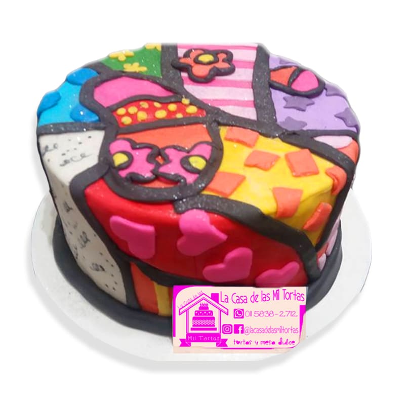 Torta forrada con colores que evocan a los diseños de Romero Britto.