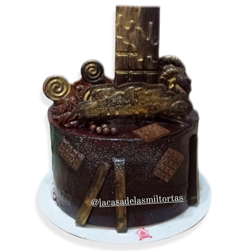Torta de chocolate 15 porciones de bizcochuelo de chocolate y doble relleno de crema ganache de chocolate.