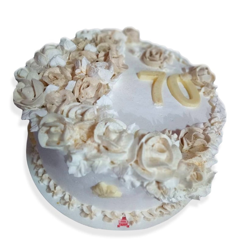 Bizcochuelo de vainilla, rellenos crema de café y crema de chocolate.