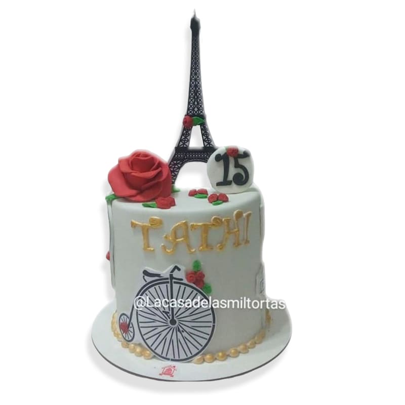 Torta Paris, bizcochuelo de vainilla tres cortes de relleno: crema de frutilla, crema oreo y crema marroc.