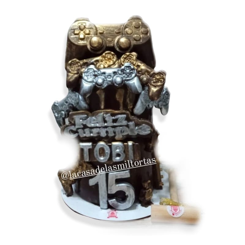 Torta Piñata rellena de rocklets y gomitas. Decoración personalizada con mucho chocolate.