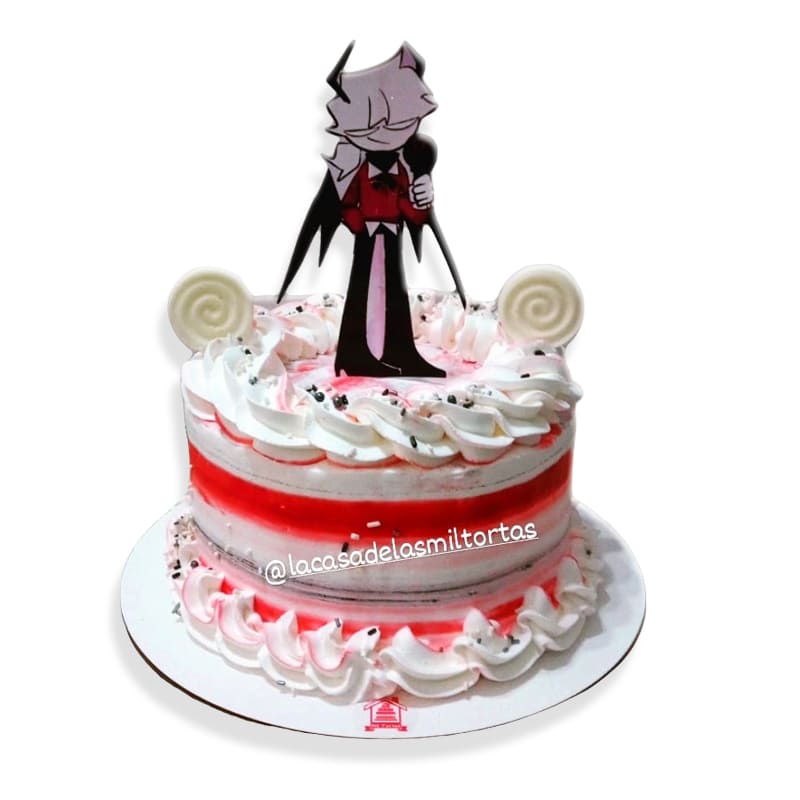 Torta temática 8 porciones de bizcochuelo de vainilla y relleno de bananita dolca, decorada de chantilly y topper fotográfico.